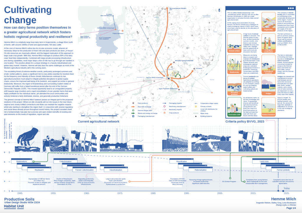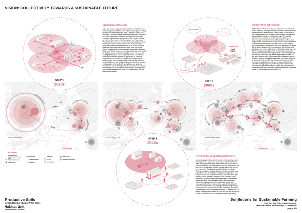 The Master Studio offered in the Winter Semester 2023 at TU Berlin critically engages with the overlooked spatial dynamics of rural and sparsely populated areas in the context of extended urbanization. While contemporary discourse often centers on cities as primary sites of innovation and transformation, the studio highlights how rural landscapes—particularly those surrounding metropolitan regions—play a fundamental role in sustaining urban life. Productive soils, understood both as material resources and spatial infrastructures, are essential for the provision of food, energy, building materials, and recreational spaces. As such, they are central to ongoing transitions in construction, food systems, and energy production. At the same time, these landscapes are increasingly under pressure from industrial agriculture and forestry, resource extraction, soil degradation, ecological crises, and the accelerating impacts of climate change.