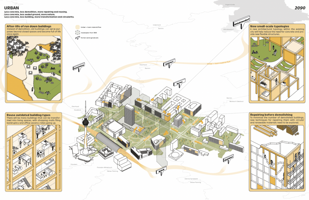 Against this backdrop, the studio investigates the socio-spatial transformations of Berlin’s hinterland, focusing on the region around Angermünde in Brandenburg as a case study. This territory serves as a key site within broader rural-to-urban material flows that are typically organized in a largely unidirectional manner, supplying metropolitan areas with essential resources while often neglecting the ecological and social consequences at the source. By analyzing existing land-use patterns, infrastructures, and resource flows, the studio seeks to uncover the underlying systems that shape these relationships and to question their sustainability and spatial justice.