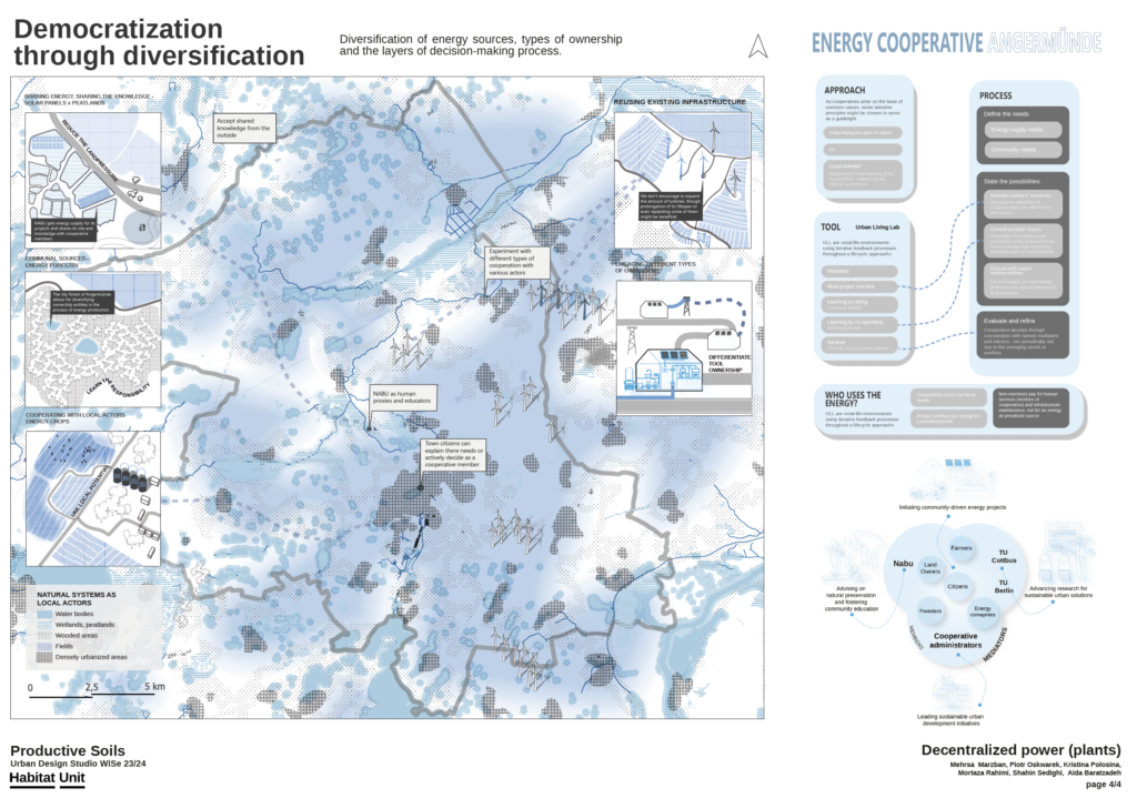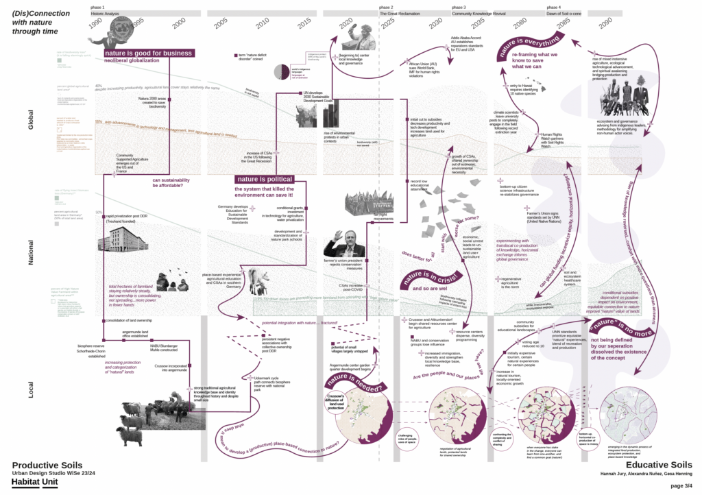 Through a combination of research, mapping, and design exploration, students engage with the challenges and potentials of productive landscapes, considering how agriculture, forestry, human recreation, and more-than-human habitats can coexist within a framework of sustainable development. The studio places particular emphasis on the future of rural soil landscapes as dynamic environments shaped by ecological processes, economic practices, and social relations, and it invites participants to propose strategies that balance productivity with environmental stewardship and resilience. The studio is developed in close cooperation with the think tank Bauhaus Earth, the City of Angermünde, and a range of local stakeholders and initiatives, ensuring that the work is grounded in real-world contexts and informed by diverse perspectives. This collaborative framework allows students to engage directly with ongoing debates and practices, fostering a deeper understanding of the complexities involved in transitioning toward more sustainable territorial systems. Ultimately, the studio aims to expand the scope of urban design by addressing the critical role of rural environments in shaping future living conditions and by contributing to more integrated, just, and ecologically responsive forms of spatial development.