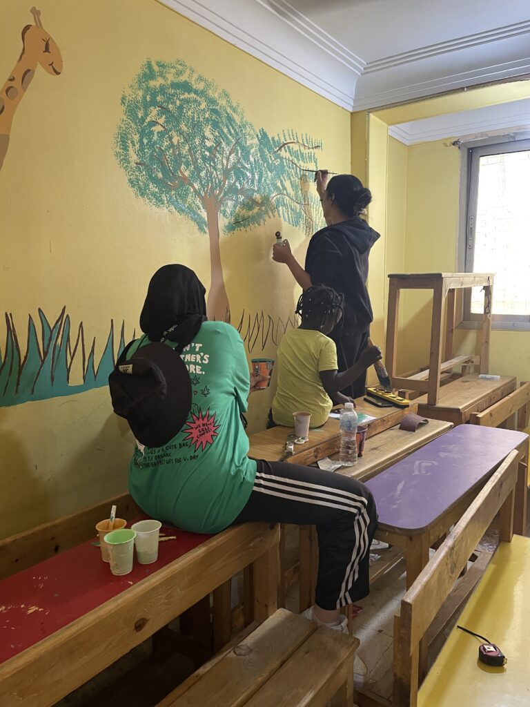 In the second phase, participants developed collaborative design and build with Sundanese refugees, thinking together about possibilities of improving urban space and enhancing inclusiveness and resilience in a community school located in Boulaq Dakour, Cairo. Together with the students and local actors, design solutions were be developed, tested and built, as knowledge-based products where new scientific notions such as “Dual Design Strategy” and designing with refugees were explored.